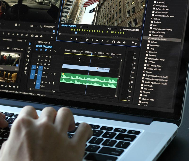 對拍攝現場收錄的現場音進行調整,讓音量與音源最佳化;或是由專業配音員進行影片旁白的錄製。